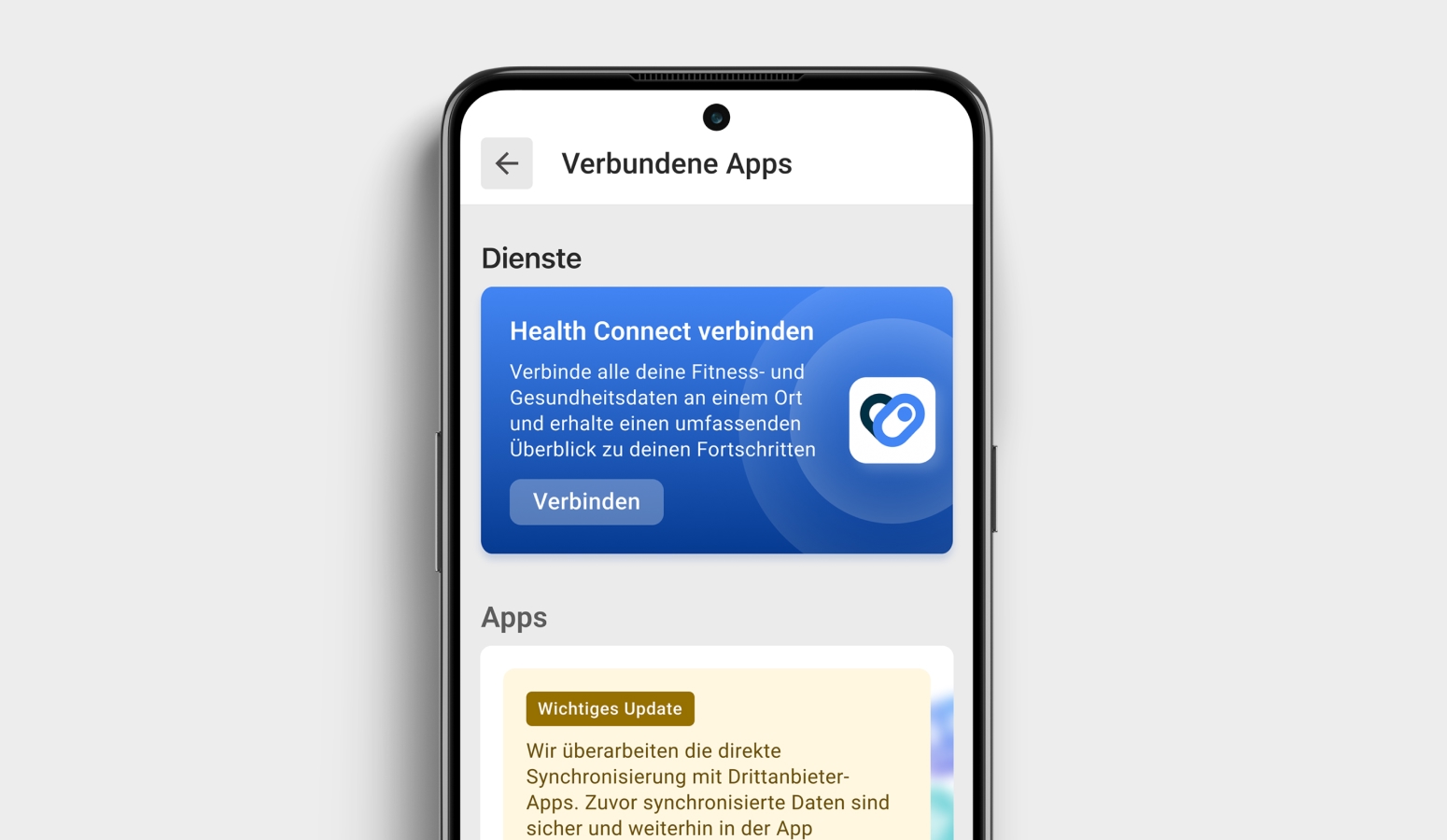 Android-Nutzer erhalten eine Push-Benachrichtigung mit der Aufforderung, Health Connect zu verbinden. Die Einrichtung erfolgt über eine einfache Schritt-für-Schritt-Anleitung. Bestehende Verbindungen zu Drittanbieter-Apps bleiben unberührt – es gehen keine Daten verloren.