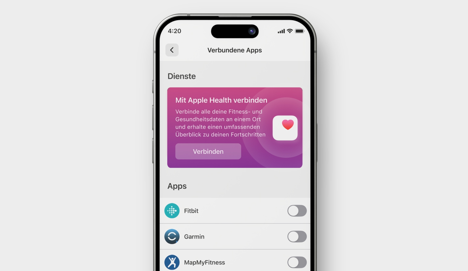 Wenn Apple Health bereits verbunden ist, ist für Apple Nutzer keine Aktion erforderlich. Die Daten bleiben sicher gespeichert und werden weiterhin nahtlos synchronisiert.